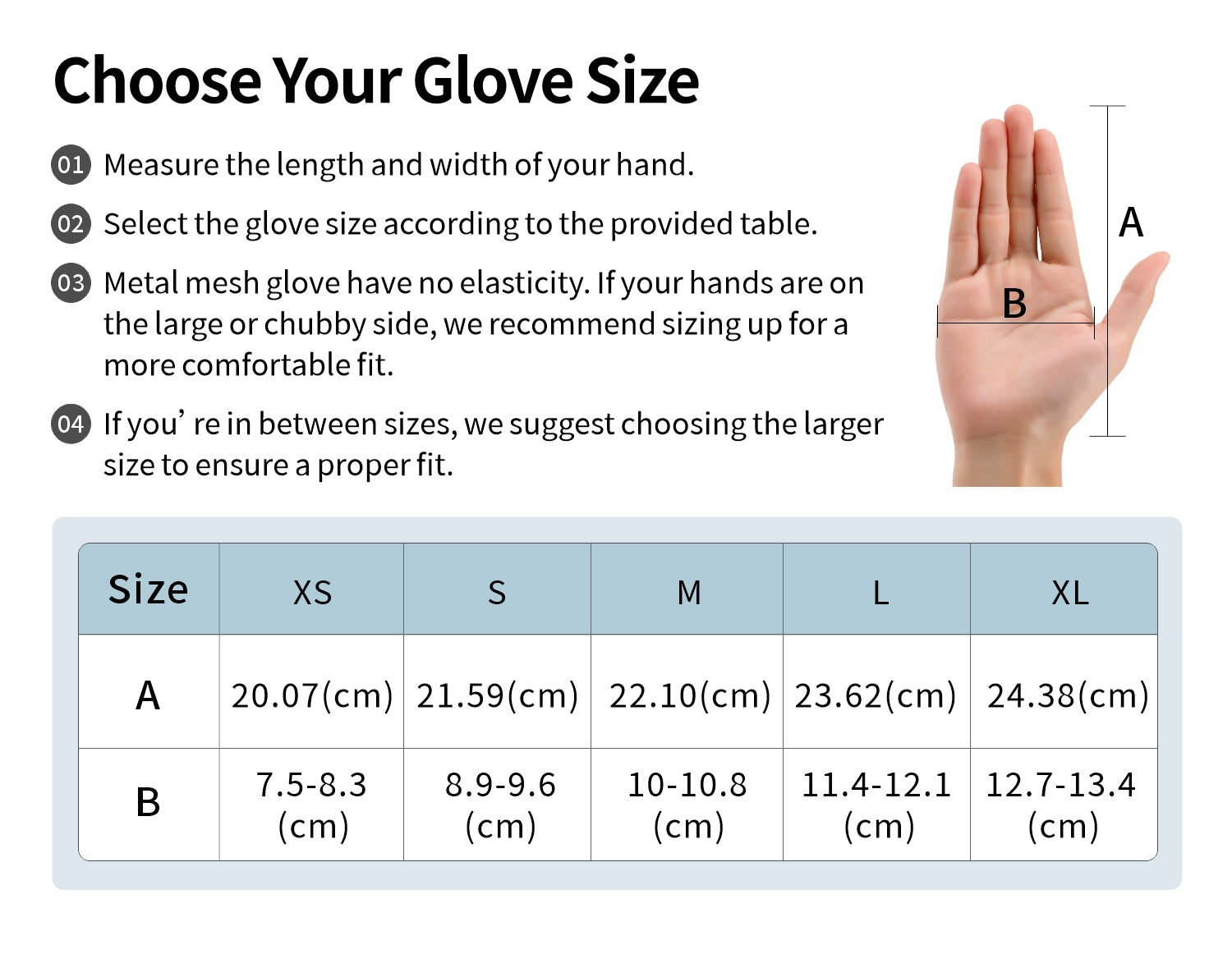 - Longer Stainless Steel Metal Mesh Glove for more complete arm and palm protection
