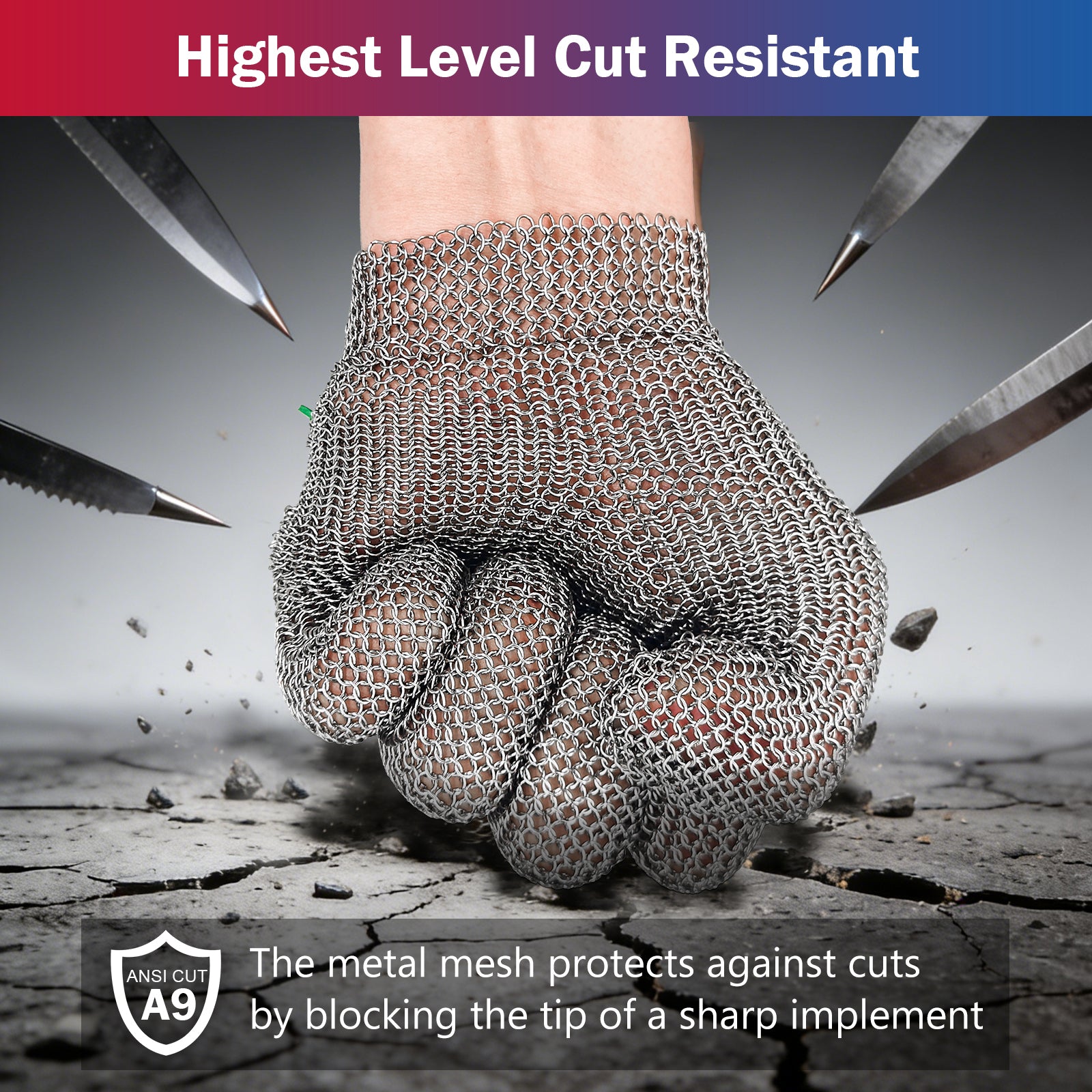 - UNIQUE CHAIN MESH DESIGN - This chainmail glove consists of metal rings locked together. The chain protects against cuts and incisions by blocking the tip of a sharp implement before it can get close enough to pierce the skin, making them the optimum hand-wear in blade handling settings.